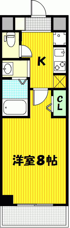 tel.06-6167-5158| 間取り詳細 | 洋室 8帖 、K 1.5帖 | 学校区 | 立葉小学校 難波中学校 |